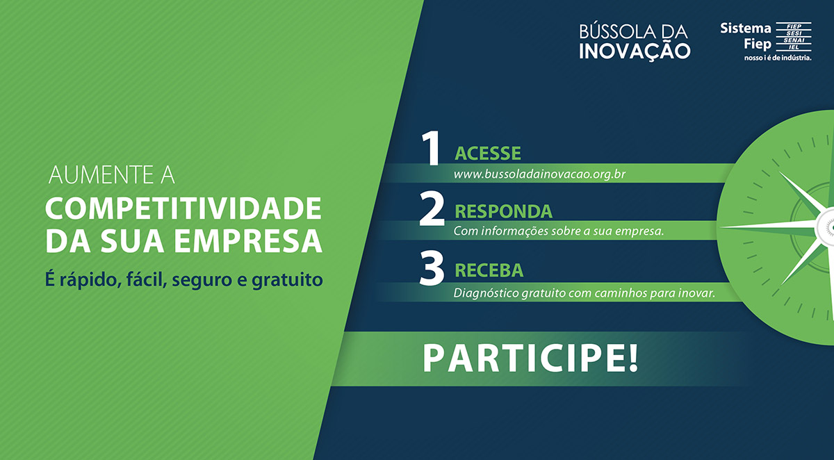 O Sistema Fiep convida todas as empresas do setor de Papel e Celulose, independente de seu porte ou segmento de atuação, a responderem a BÚSSOLA DA INOVAÇÃO, uma ferramenta poderosa para que possamos conhecer as iniciativas de inovação de nosso setor! Para se obter um caderno exclusivo de nosso setor, é necessário que ao menos 12 empresas concluam o questionário. Pedimos o seu apoio e adesão a esta proposta. Participe... É fácil rápido, seguro e gratuito! Para acessar, clique AQUI! O QUE É? A Bússola da Inovação objetiva incentivar o processo de inovação na indústria. Para isso, inclui uma pesquisa online onde, após o preenchimento, os respondentes terão acesso a um diagnóstico personalizado de inovação. POR QUE PARTICIPAR? Sua empresa deveria participar para ter acesso a informações que possam transformar a sua competitividade, por meio de: • Diagnóstico online personalizado de como está o processo de inovação da empresa, com sugestões de ações e ferramentas para melhorá-lo ainda mais; • Conjunto de conhecimento das dimensões que compõem o processo de inovação; • Posicionamento da empresa em seu setor industrial. METODOLOGIA O questionário foi construído com base em pesquisas mundiais sobre inovação. Para isso, foi adotada uma metodologia de pesquisa científica que compreendeu uma vasta revisão da literatura e entrevistas com especialistas em inovação. CONFIDENCIALIDADE A Bússola da Inovação garante o sigilo dos dados informados, conforme exige o Código Internacional de Ética e Pesquisa. As respostas fornecidas serão apenas consideradas de forma agregada e, portanto, nenhuma empresa, ou respondente, será identificado na análise geral dos resultados da pesquisa. DÚVIDAS A pesquisa e seus benefícios O QUE É A BÚSSOLA DA INOVAÇÃO? A Bússola da Inovação objetiva incentivar o processo de inovação na indústria. Para isso, inclui uma pesquisa online onde, após o preenchimento, os respondentes terão acesso a um diagnóstico personalizado de inovação. POR QUE É IMPORTANTE SABER SOBRE A INOVAÇÃO A inovação é considerada um fator fundamental para a competividade e produtividade das empresas e, consequentemente, para o crescimento econômico de uma região. Por que a Bússola da Inovação precisa contar com a sua participação? Para traçar um retrato real da inovação, a pesquisa Bússola da Inovação precisa contar com o maior número possível de respostas. Assim, a participação de cada indústria é fundamental para mostrar as necessidades de cada setor e região. Com base nessas informações, podem ser idealizadas e planejadas ações específicas para facilitar o processo de inovação nas indústrias. Que benefícios você poderá obter ao participar da Bússola da Inovação? Após responder a pesquisa Bússola da Inovação, você receberá um diagnóstico do processo de inovação da sua indústria, contendo dicas e sugestões de como melhorar ainda mais esse processo. RESULTADOS DA BÚSSOLA DA INOVAÇÃO Como as informações da Bússola da Inovação serão utilizadas? As informações serão analisadas em conjunto, de forma agregada, buscando estabelecer um retrato setorial da inovação. Em nenhum momento as informações serão analisadas individualmente. Quando as informações da Bússola da Inovação serão divulgadas? As informações gerais da pesquisa serão divulgadas após o encerramento da coleta de dados. COMO AS INFORMAÇÕES SERÃO DIVULGADAS As informações serão divulgadas por meio de estudos setoriais e/ou publicações técnico-científicas. QUEM PODE PARTICIPAR DA BÚSSOLA DA INOVAÇÃO Qualquer indústria pode participar da pesquisa Bússola da Inovação? Sim. A pesquisa é direcionada para as indústrias de todos os portes. As indústrias que possui origem ou matriz em outros locais (estados/países) também podem participar da Bússola da Inovação? Sim. Todas as indústrias que possuem unidade produtiva no estado podem participar da pesquisa. No entanto, as respostas deverão condizer à realidade da unidade localizada no estado. Indústrias que não estão localizadas no estado também podem participar da Bússola da Inovação? Não. No momento a pesquisa se restringe apenas às indústrias instaladas em estados que possuem edição própria. Como participar da Bússola da Inovação? Basta acessar o link. Você entra com o seu e-mail e cadastra uma senha. Então, é só iniciar a pesquisa. Posso participar mais de uma vez da pesquisa? Cada empresa pode participar apenas uma vez em cada edição. Entretanto, após concluir a pesquisa, você poderá acessar seu diagnóstico sempre que necessário, utilizando seu login e senha. A Bussola da Inovação está presente em quais estados? Paraná e Ceará. É possível participar a qualquer tempo? Não, as edições são promovidas a cada dois anos e ficam disponíveis por cerca de seis meses em cada ciclo. ACESSO Em caso de perda ou esquecimento da senha, como devo fazer? Caso já tenha iniciado a pesquisa e você não se recorda de sua senha, selecione a opção "Lembrar senha" na página inicial da pesquisa online. Mais de uma pessoa da mesma indústria pode responder a pesquisa? Sim, mas não ao mesmo tempo. O acesso à plataforma será por meio do e-mail e senha do respondente que iniciou o processo. Então, haverá apenas um respondente cadastrado por questionário. Caso eu pare de responder a pesquisa antes do final, receberei o diagnóstico? Não, para o relatório ser gerado é necessário completar o questionário e responder todas as perguntas. AINDA TENHO DÚVIDAS, COM QUEM POSSO FALAR? Contato: Augusto Cesar Machado augusto.machado@sistemafiep.org.br Observatório Sistema FIEP Tel. (41) 3271-7556 . (41) 98865-6719 www.sistemafiep.org.br