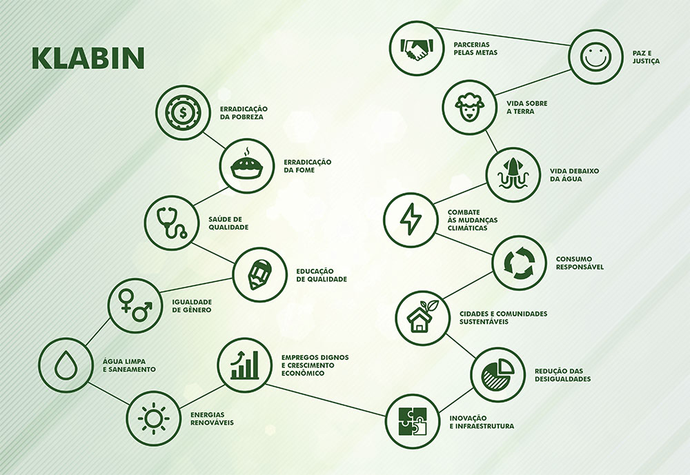 Para a Klabin, sustentabilidade possui um profundo significado na história e na vida da empresa. É o fundamento maior da gestão dos negócios e um compromisso de longo prazo com os acionistas, clientes, colaboradores, fornecedores e com as comunidades em que atua. Das florestas às embalagens, existe um modelo de autossuficiência, respeito ao meio ambiente e estímulo ao desenvolvimento de todos os stakeholders que integram a cadeia produtiva. Para colocar em prática esse compromisso, a Klabin elaborou objetivos e metas para incorporar tanto os temas relevantes para o seu negócio quanto os assuntos dessa agenda global à sua Estratégia de Sustentabilidade. OBJETIVOS DE DESENVOLVIMENTO SUSTENTÁVEL DA KLABIN